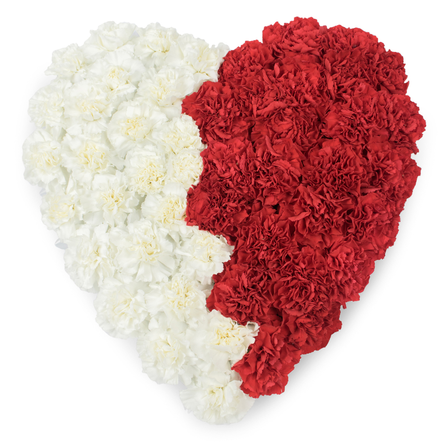 Introducing the Elegant Sympathy Carnation Heart, a poignant arrangement by Handy Flowers. This bouquet features a delicate mix of white and red carnations, thoughtfully arranged into a heart shape to express your deepest sympathies.